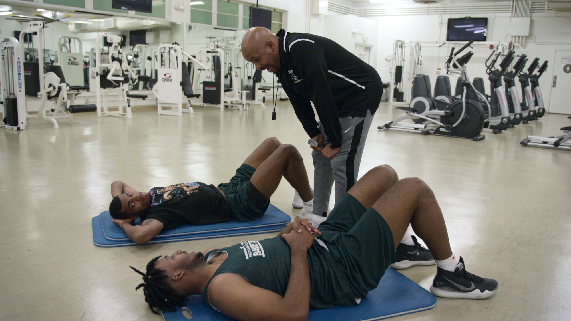 The East LA College Huskies with John Mosley (Head Coach) in episode 3 “Jenny” of Last Chance U: Basketball: Season 1. c. Courtesy of Netflix © 2021